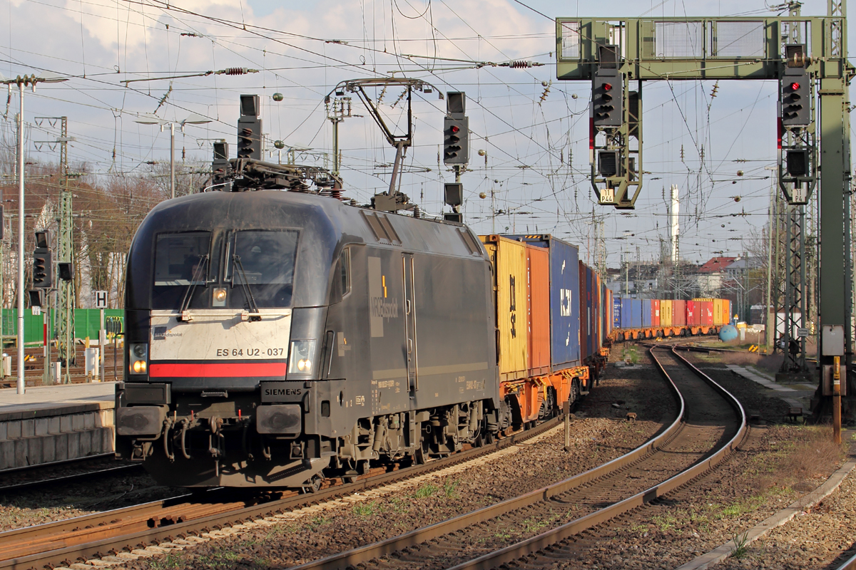 MRCE Dispolok/TXL ES 64 F4-102 mit einem Stahlzug am 17.7.13 in Ratingen-Lintorf.