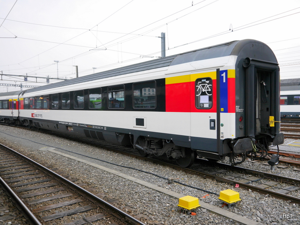 SBB - Internationaler Personenwagen 1 Kl. Apm 61 85 10-90216-5 im Bahnhofsareal in Biel am 15.03.2014