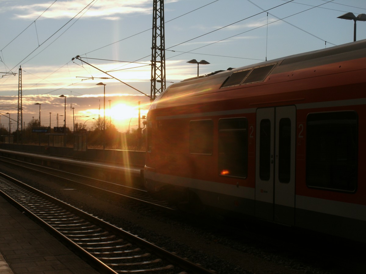 Sonnenuntergangstimmung,am 27.Oktober 2013,am Bahnhof in Bergen/Rügen.