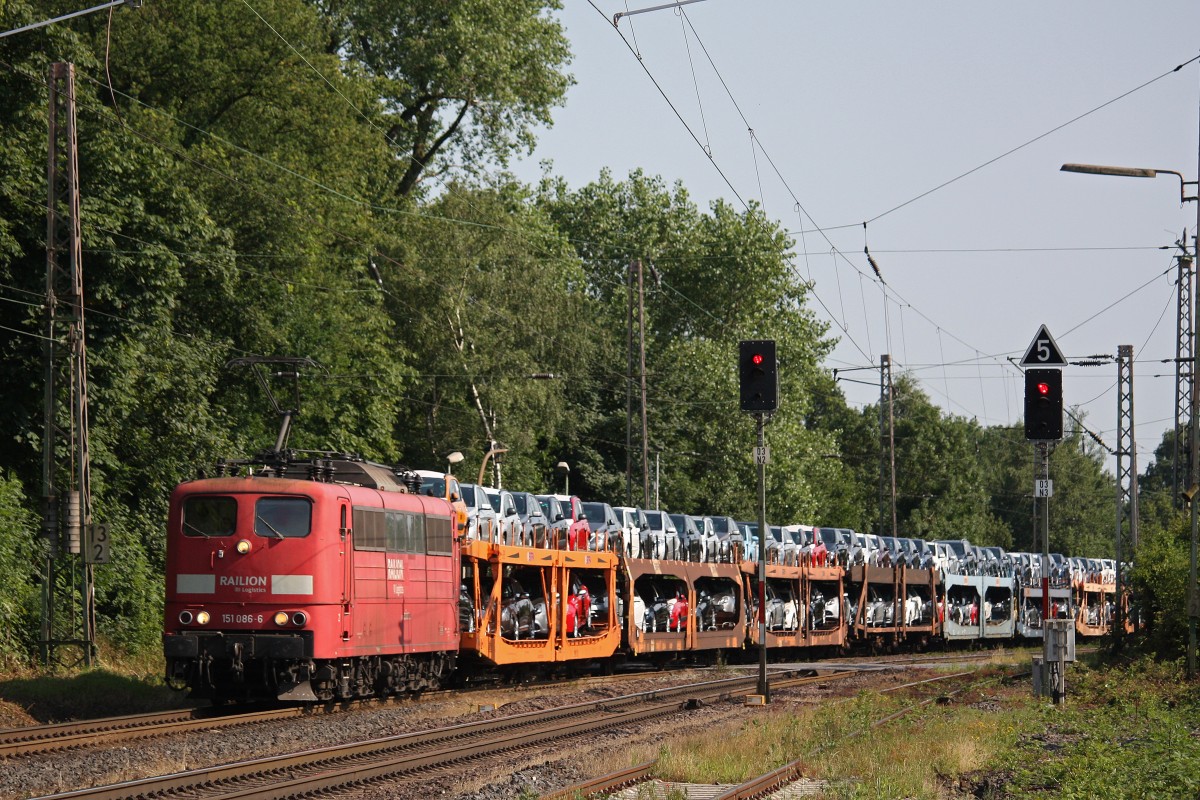 151 086 am 8.7.13 mit einem Autozug in Ratingen-Lintorf.