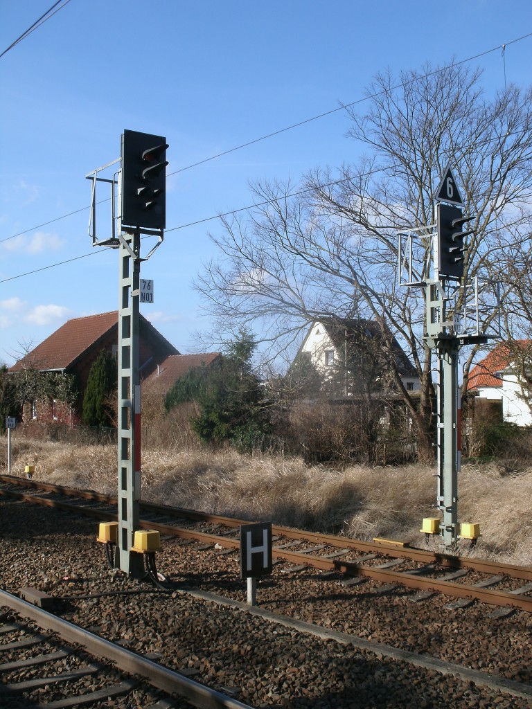 Ausfahrsignale Richtung Rostock,am 23.Februar 2014,in Ribnitz Damgarten Ost.