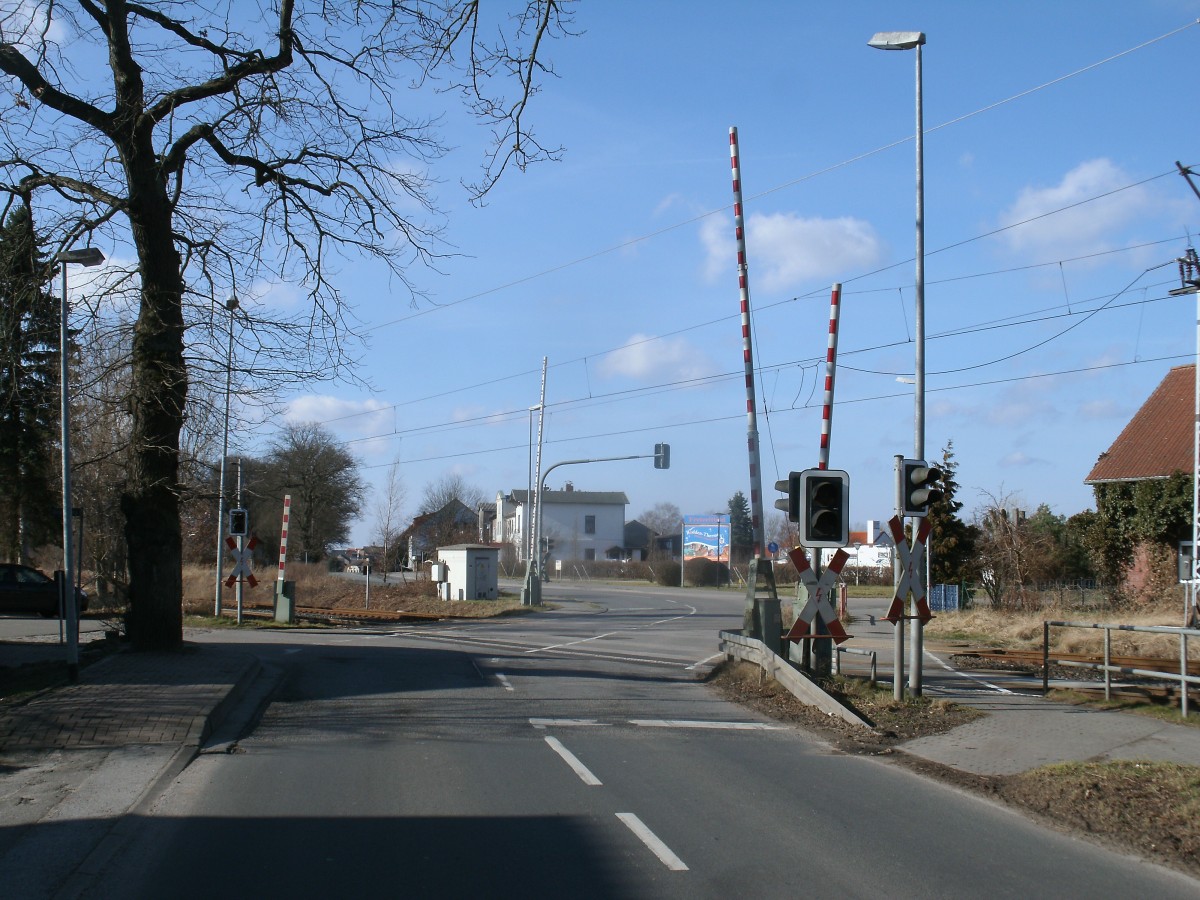 Bahnübergang am Bahnhof Ribnitz Damgarten Ost am 23.Februar 2014.