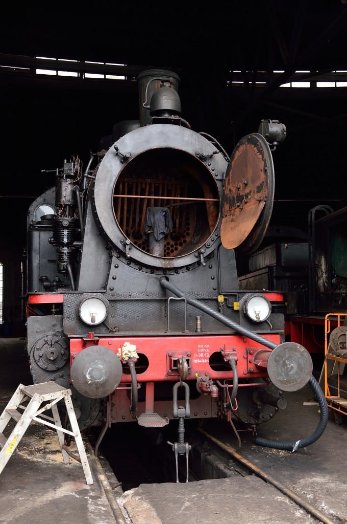 die E 16 08, die im Überigen gerade neu gestrichen wird. Leider ist noch nicht die ganze Maschine im neuen Kleid und daher nur mal die Front, die schon im satten Grün zusehen ist. 2.3.2014