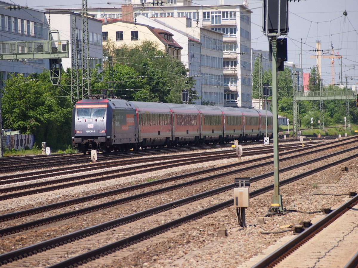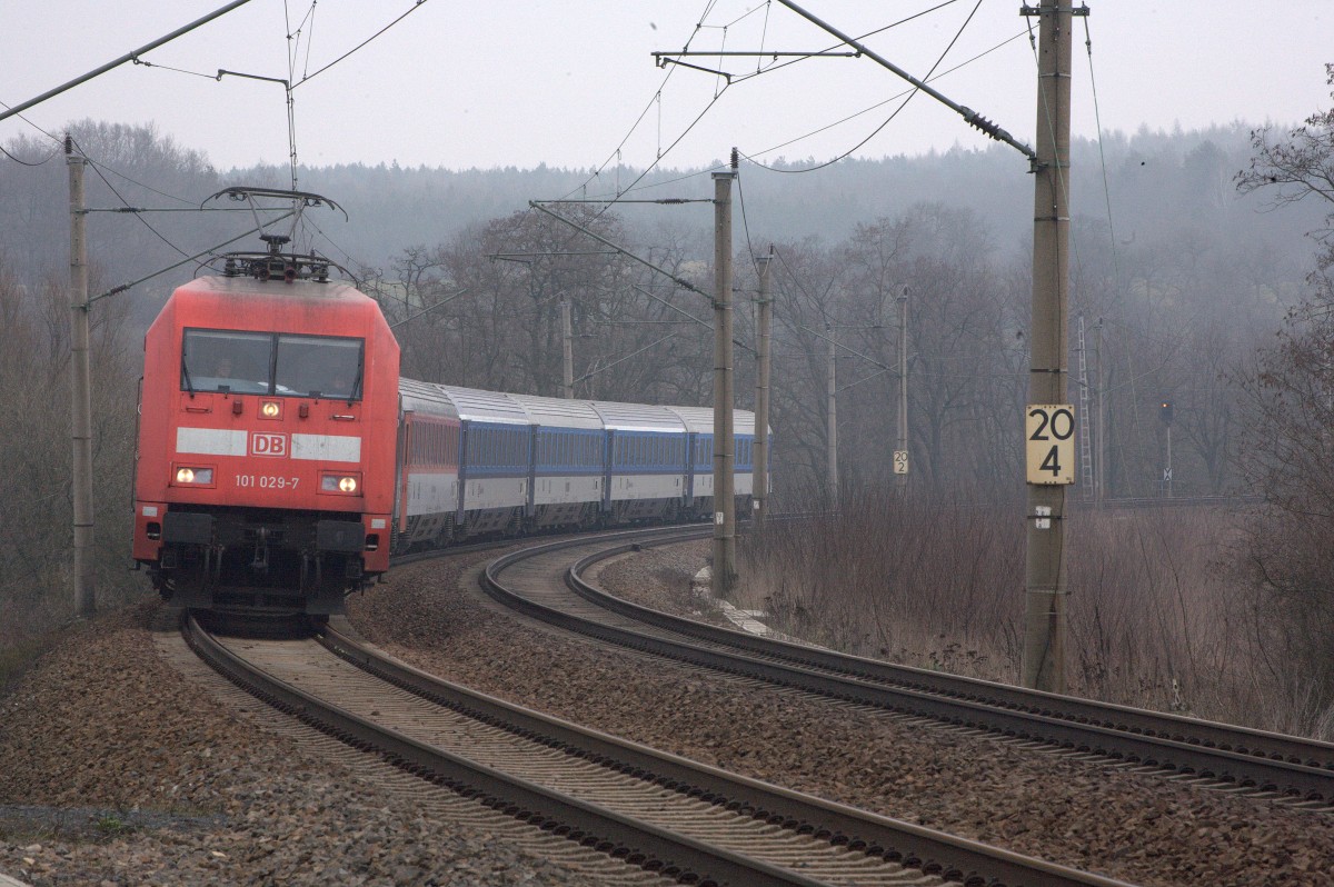 101 029-7 mit dem EC 378 aus Bratislava nach Stralsund in der Oberauer Kurve.