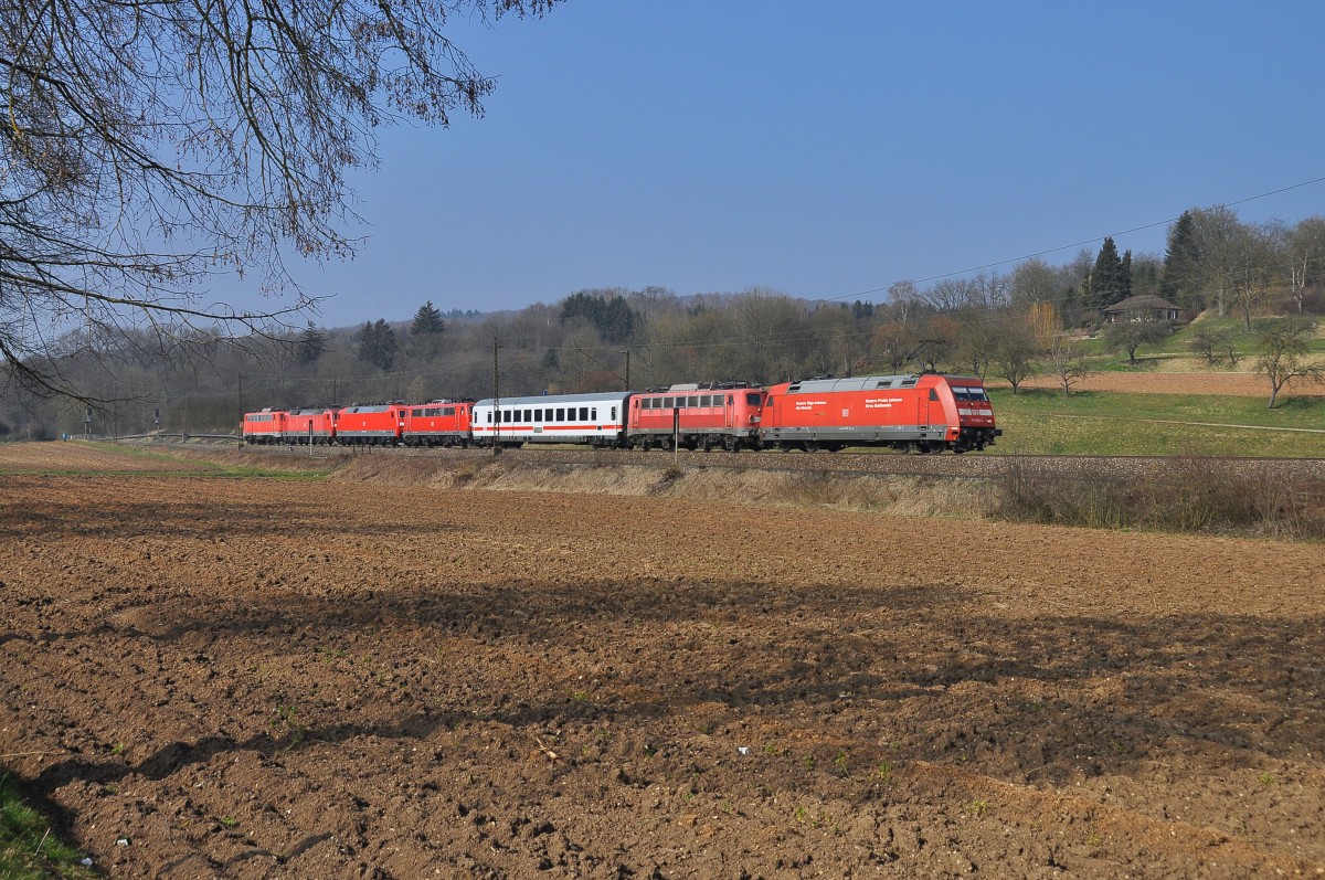 120 154 führte am 06.03.14 den PbZ 2467 von Berlin nach Leipzig durch Greppin. In Dessau wurden noch 115 114 und 146 224 angehangen.