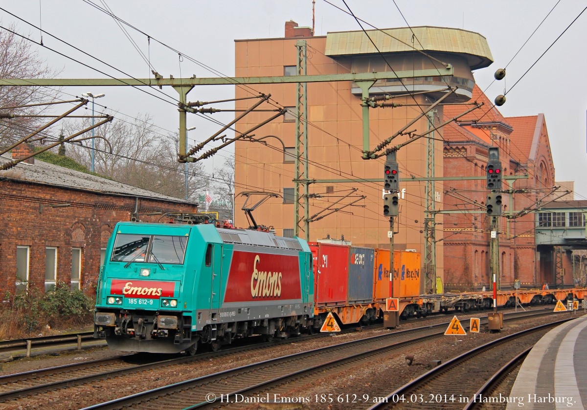 185 612-9 "Emons" Rail Cargo am 04.03.2014 in Hamburg Harburg.