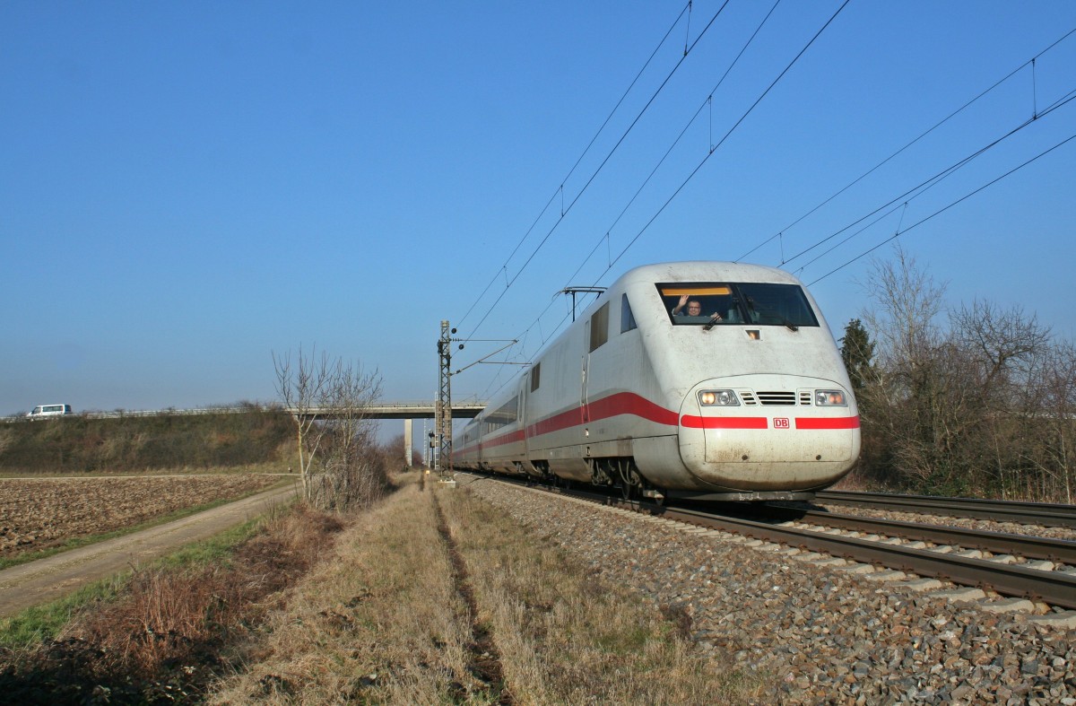 401 520-2 als ICE 279 von Berlin Ostbahnhof nach Basel SBB, aufgenommen am 31.01.14 bei Hügelheim.