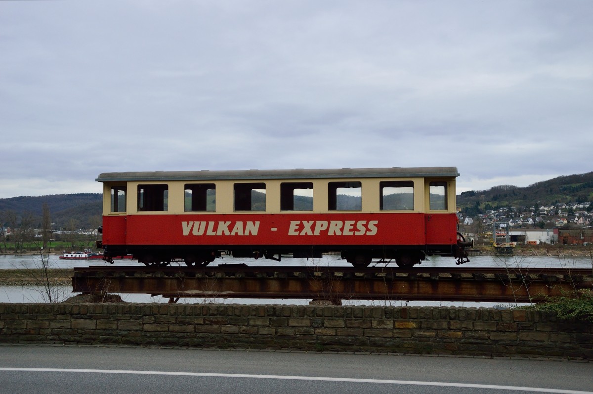 Commercial Icon......an der B9...Am Orsteingangschild in Brohl-Lützing an der alten Verladeeinrichtung der Brohltalbahn steht dieser alte Personenwagon ohne weiteren Anschluß als Werbebanner. 28.2.2014