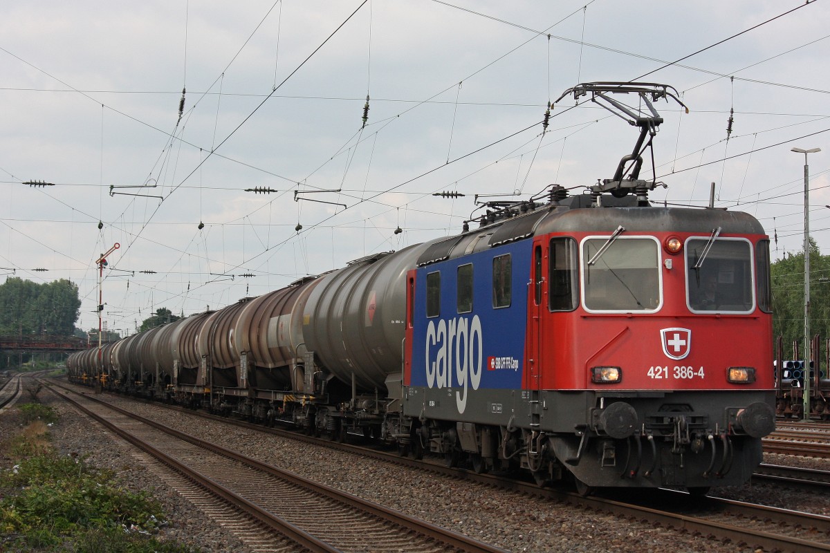 SBB Cargo 421 386 am 10.7.13 mit einem Kesselzug in Düsseldorf-Rath.