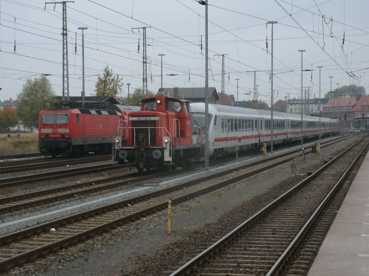 Stralsund Hbf am 12.Oktober 2013 mit der arbeitenen 363 136.