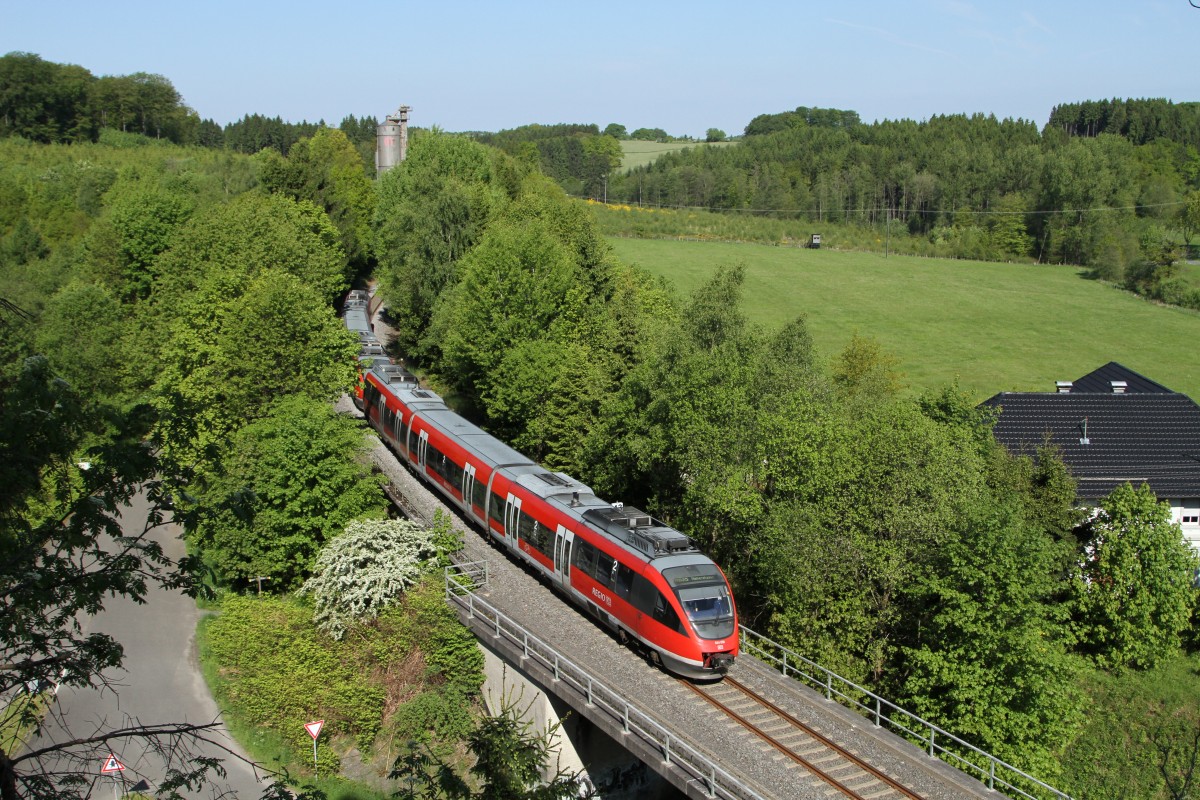 Zwei Euregiobahn (RB20) aus Heerlen(NL)-Düren-Stolberg-Altstadt kommt die Kohlscheider-Rampoe hoch aus Richtung Herzogenrath und hält in Kohlscheid und fährt in Richtung Richterich,Laurensberg ,Aachen-West.