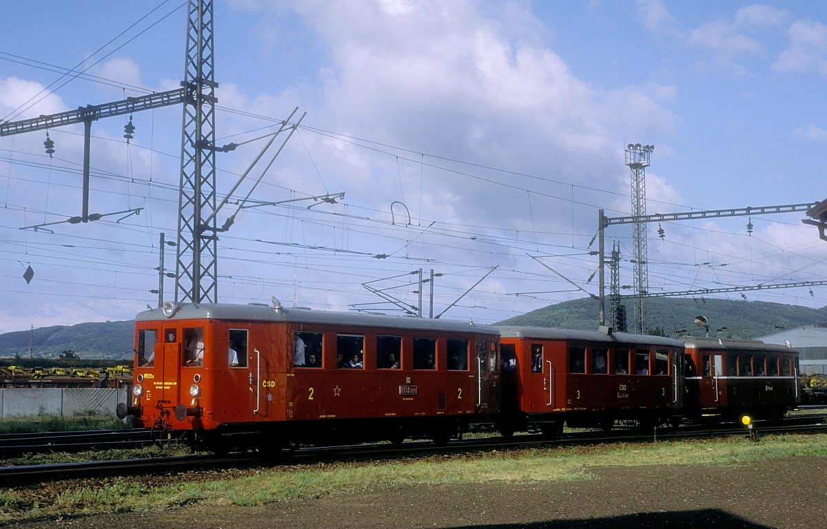 OeBB/DB: An Christi Himmelfahrt feiern die Männer in Deutschland den Vatertag. Vor 32 Jahren gönnten sich Eisenbahnfreunde zu diesem besondern Anlass mit dem Gläsernen Zug eine Sonderfahrt nach Balsthal zur Oensingen Balsthal Bahn. Dieser spezielle Zug mit Baujahr 1935 ist im Jahre 1995 bei einem Zugsunglück leider derart stark beschädigt worden, dass er im Jahre 1997 ausgemustert werden musste. OeBB Be 2/4 201 ebenfalls aus dem Jahre 1935 und DB 491 001-4 ex DR ET 9101 in Balsthal vereint an Christi Himmelfahrt im Juni 1982.