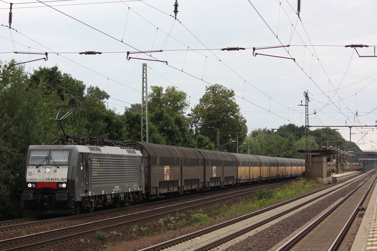 MRCE Dispolok/TXL ES 64 F4-027 am 8.8.13 mit einem Autozug in Dedensen-Gümmer.