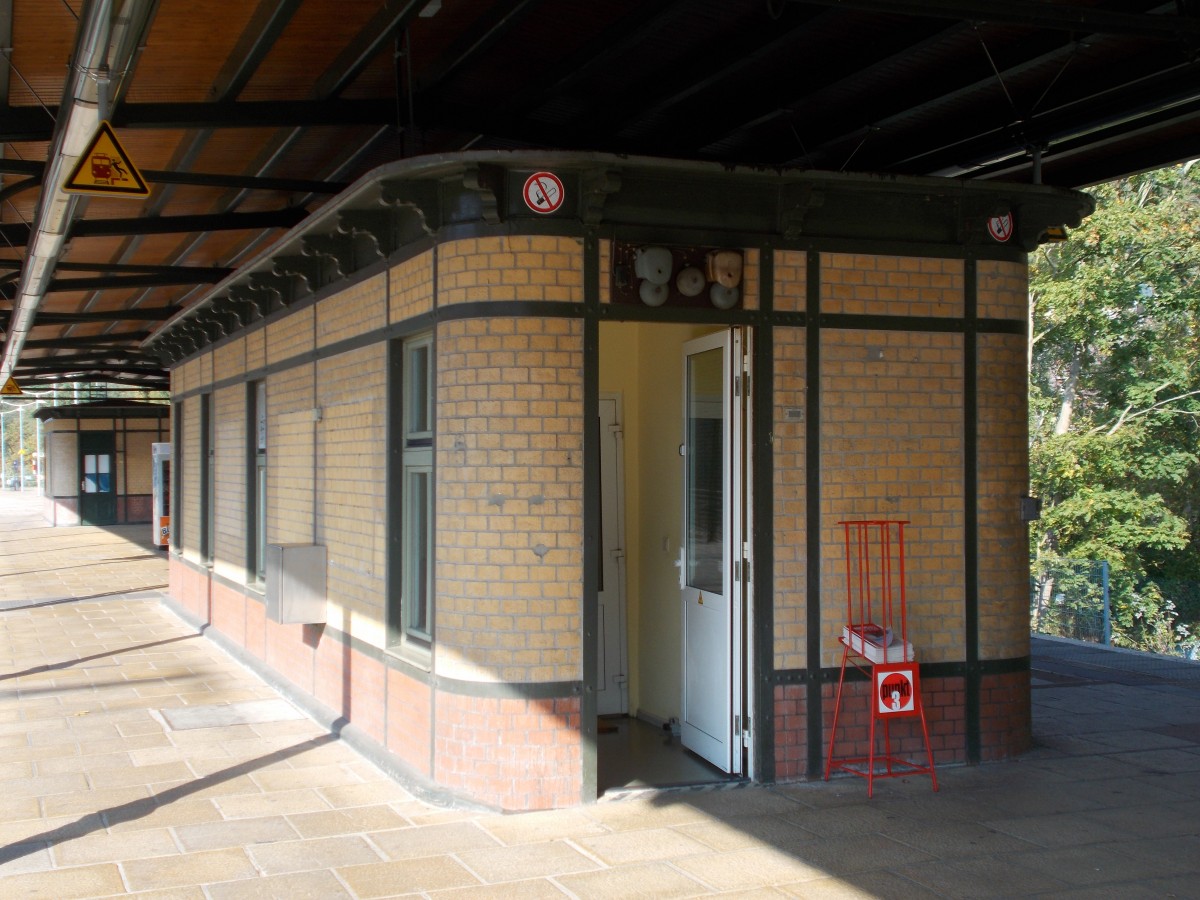 Berlin und seine typischen Aufsichtshäuschen für die S-Bahnaufsicht.Aufgenommen am 05.Oktober 2014 in Berlin Rahnsdorf.