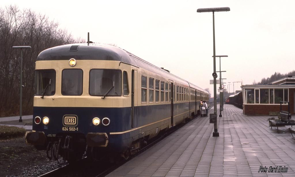114495 kurz vor dem Bahnhof Natrup Hagen auf der Rollbahn unterwegs am 6.3.1989 um 10.48 Uhr mit dem D 439 nach Rostock.