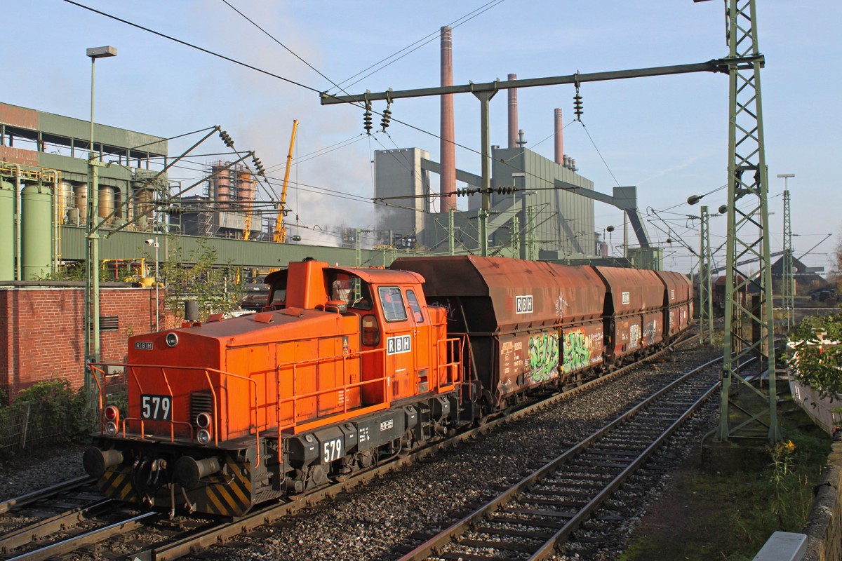 RBH 579 kam am 29.11.14 mit einem Kohlezug vom Bergwerk Prosper. Hier an der Kokerei Prosper.