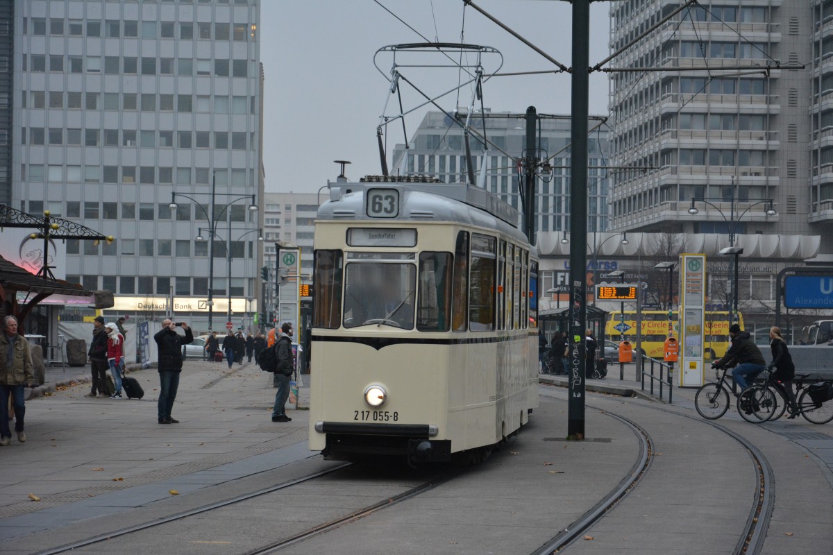 Rekozug als Sonderfahrt am 11.11.2014 am Alexanderplatz Berlin. Triebwagen 217055-8.