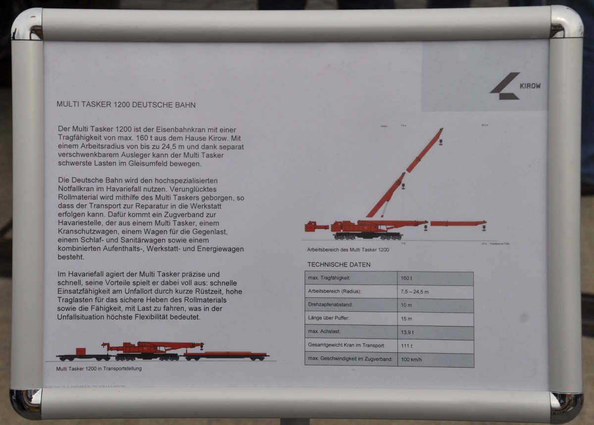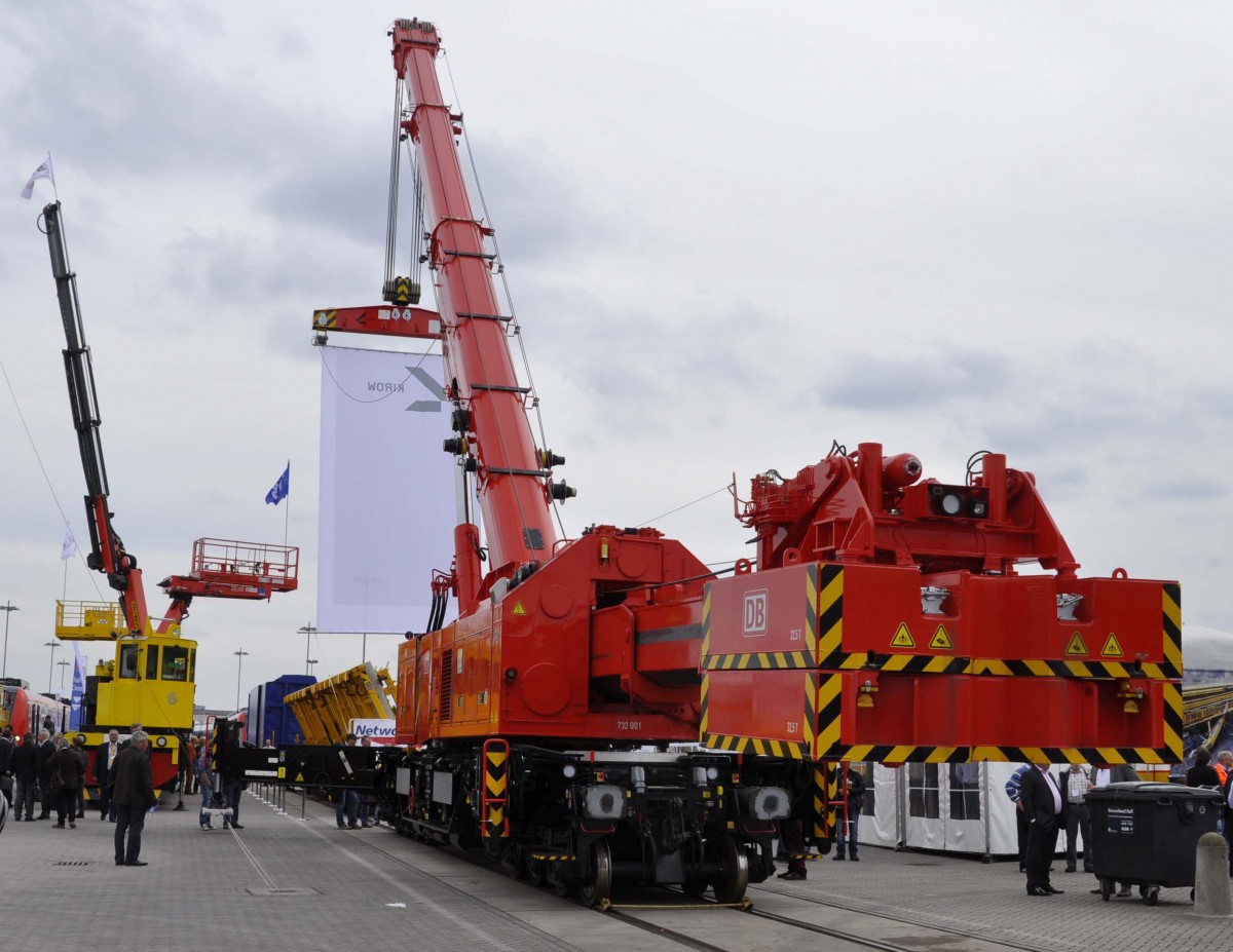 Der Aussteller Kirow präsentiert auf der InnoTrans am 28.09.2014 in Berlin den 130 t Eisenbahndrehkran.