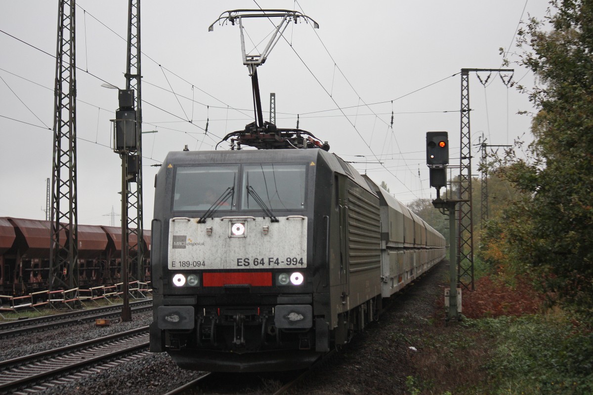 MRCE Dispolok/NIAG ES 64 F4-994 am 2.11.13 mit einem Kohlezug in Duisburg-Bissingheim.