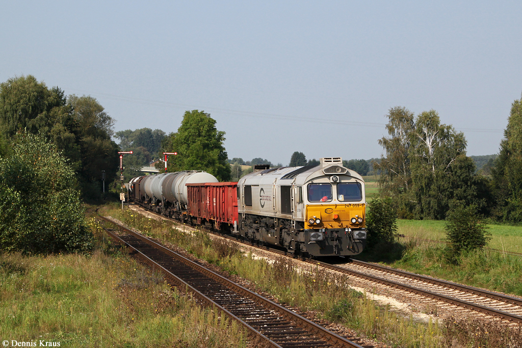 247 059 mit Güterzug 52353 am 07.09.2014 in Schwindegg.