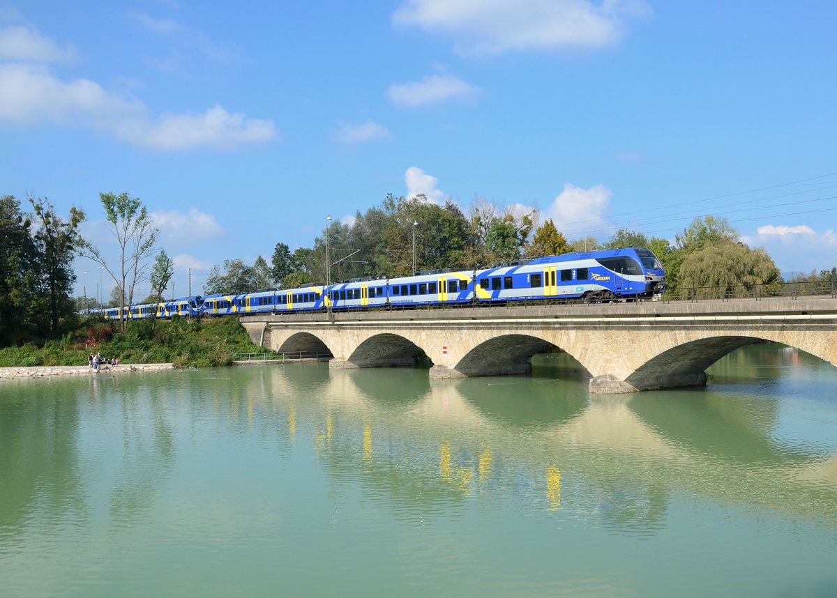 430 016 (ET 316) als M nach Salzburg am 03.10.2014 auf der Saalachbrücke bei Freilassing.