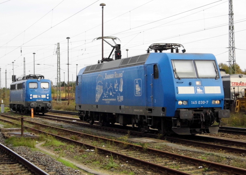 Am 10.10.2014 standen die 140 041-5 und die 145 030-7 von der Press in Stendal .