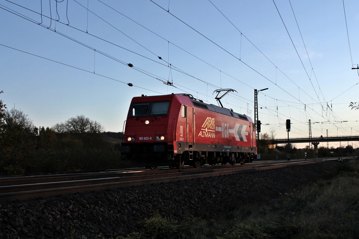 Nachschuss auf HGK 2061 (185 603-8) "ARS", die am 09.11.2013 als Lz bei Müllheim (Baden) gen Norden fuhr.
