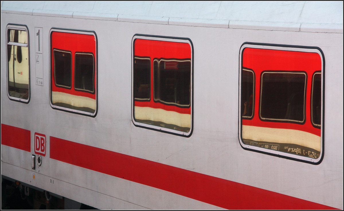 Fernverkehr und Nahverkehr der DB. Aufgenommen aus dem Zug im Bahnhof Essen oder Bochum.