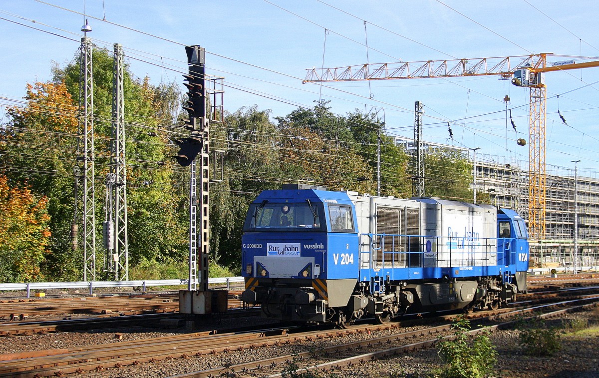 Die V204 von der Rurtalbahn kommt als Lokzug aus Richtung Stolberg-Rheinland und fährt in Aachen-West ein. Aufgenommen vom Bahnsteig in Aachen-West bei schönem Herbstwetter am Nachmittag vom 18.10.2014.
