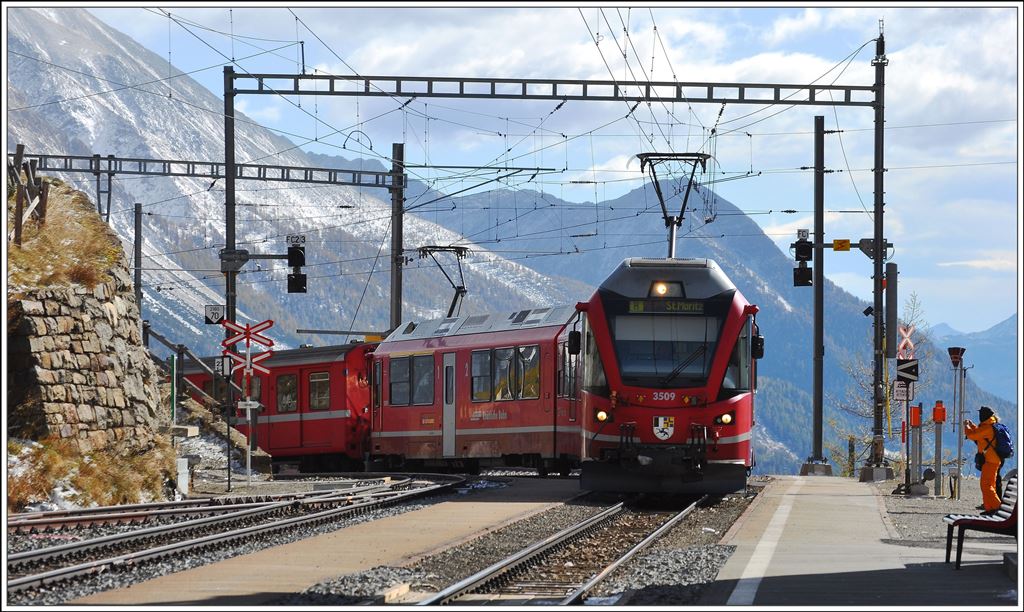 R1648 mit Allegra 3509 erreicht die Alp Grüm 2091m ü/M. (23.10.2014)