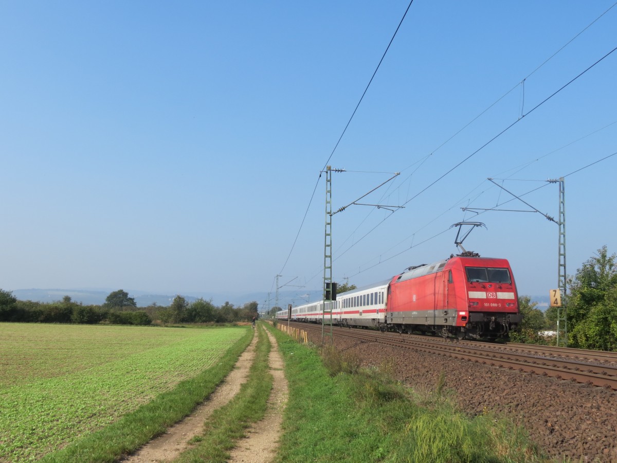 101 076 brachte am 3.Oktober den IC2218 von Stuttgart nach Hamburg. Hier ist sie bei Gau-Algesheim zu sehen.