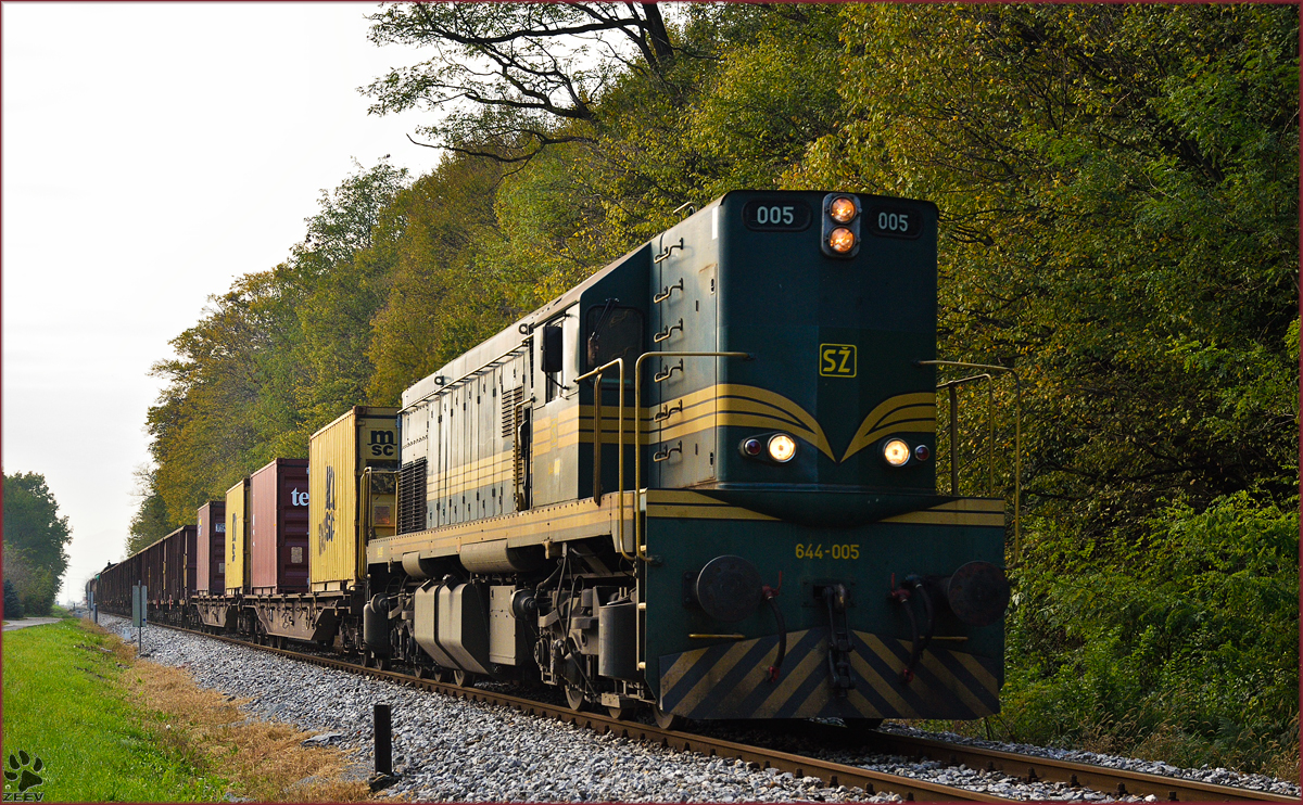 SŽ 644-005 zieht Güterzug durch Maribor-Studenci Richtung Tezno VBF. /29.10.2014