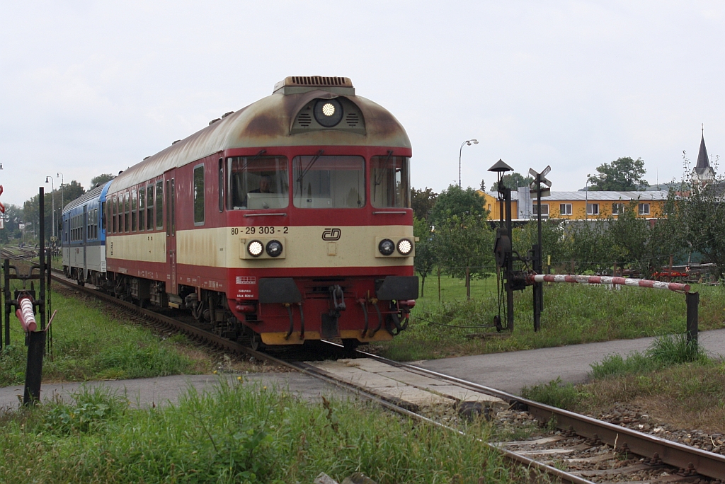 80-29 303-2 als Os 4515 (Znojmo - Breclav) am 27.September 2014 nach der Ausfahrt aus dem Bf. Mikulov na Morave.