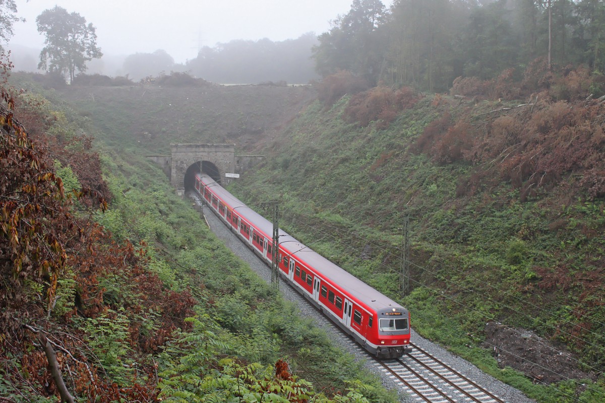 Eine S6 nach Köln-Nippes am 1.9.14 bei der Ausfahrt aus dem Höseler Tunnel.