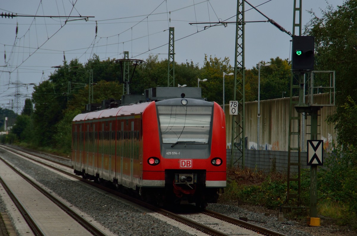 Nachschuß auf den 425 574-1 wie er gerade Anrath verlässt in Richtung Forstwald auf seinem Weg als RB 33 nach Duisburg. Sonntag 31.8.2014
