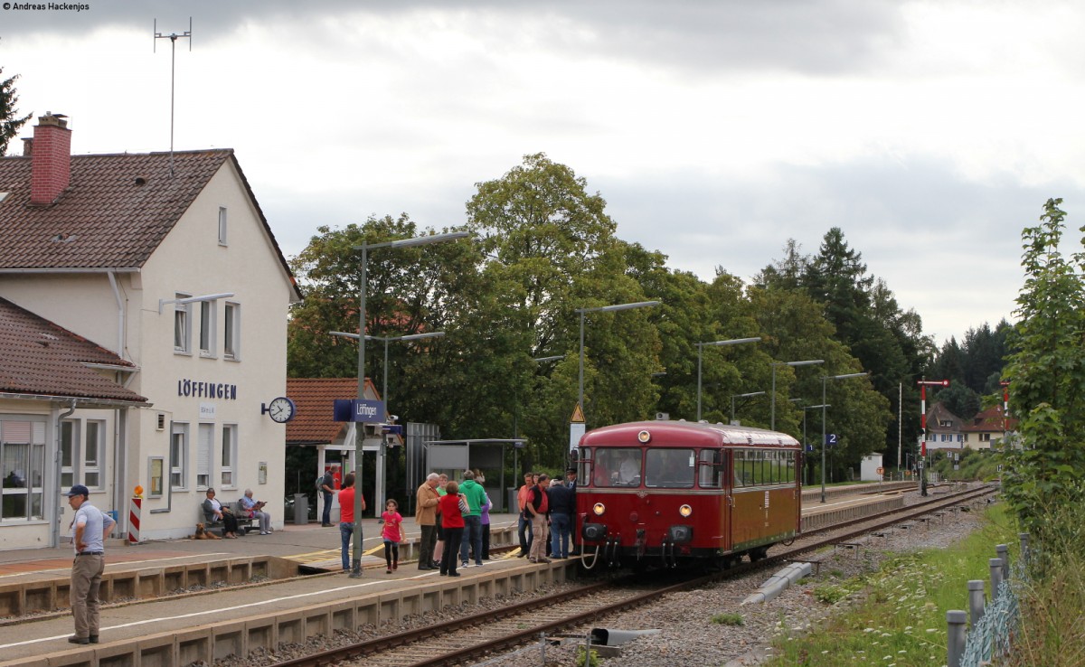 Am 01.05.1987 fand in Dieringhausen ein Bahnhofsfest mit Pendelfahrten nach Waldbröl und Derschlag statt. Hier ist der 795 627 des Eisenbahnamateurclubs Jülich bei Wiehl unterwegs.