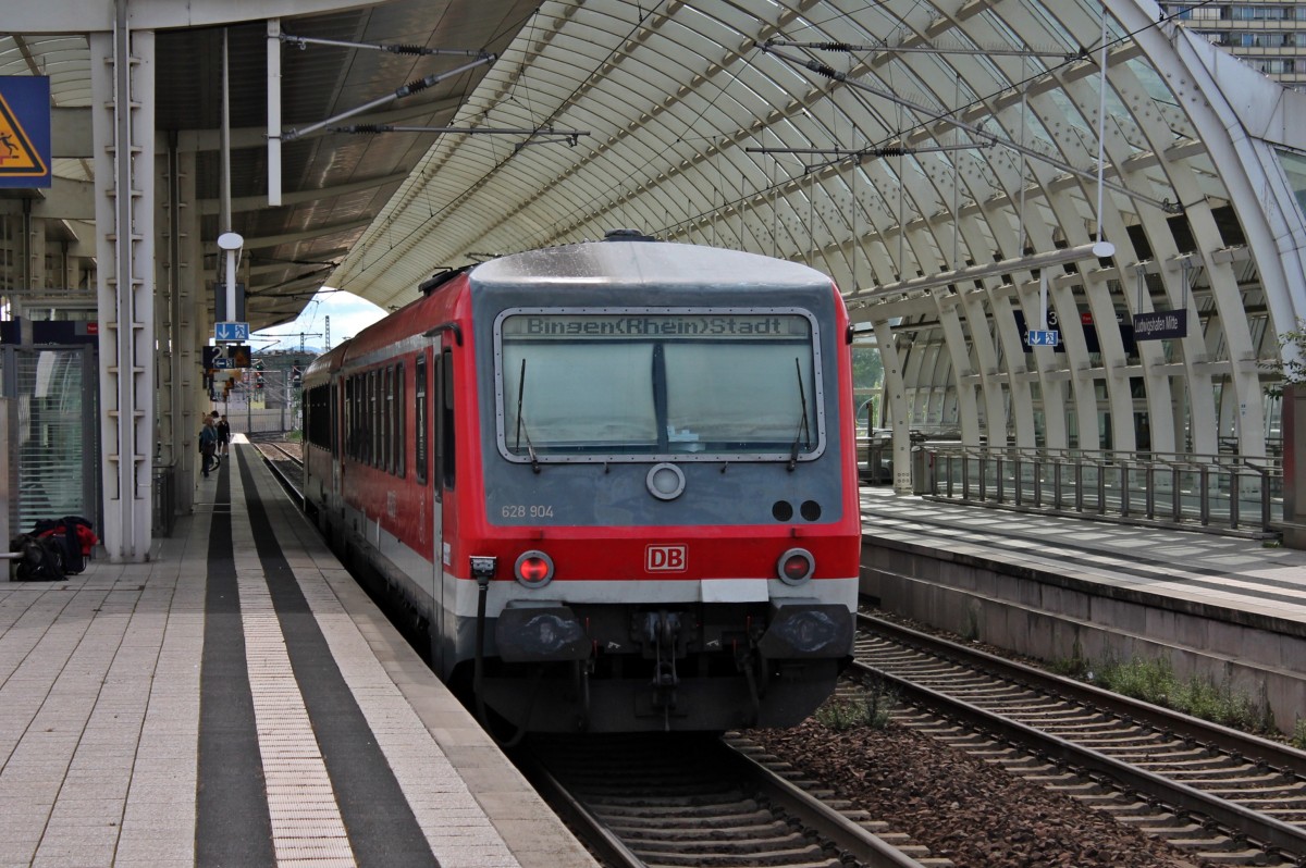 Nachschuss auf 628 904 am 24.05.2014 als er auf seinem Weg nach Bingen (Rhein) Stadt einen Zwischenhalt in Ludwigshafen (RHein) Mitte macht.
