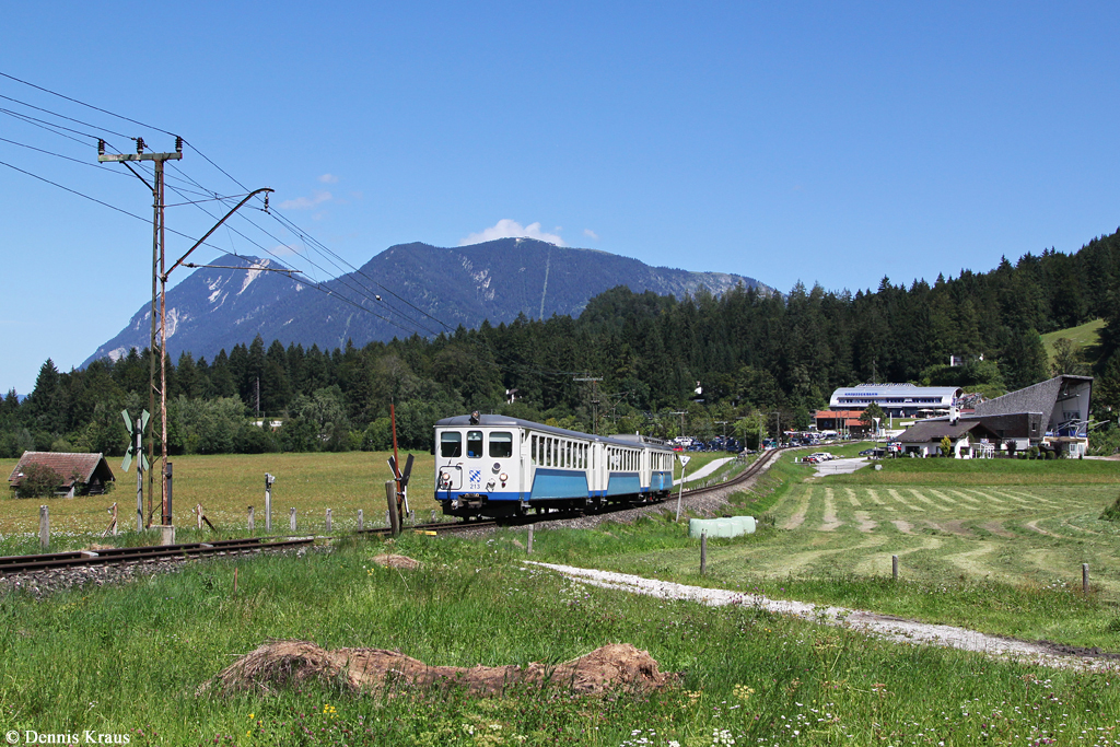 Wagen 213 der Zugspitzbahn am 17.08.2014 bei Grainau.