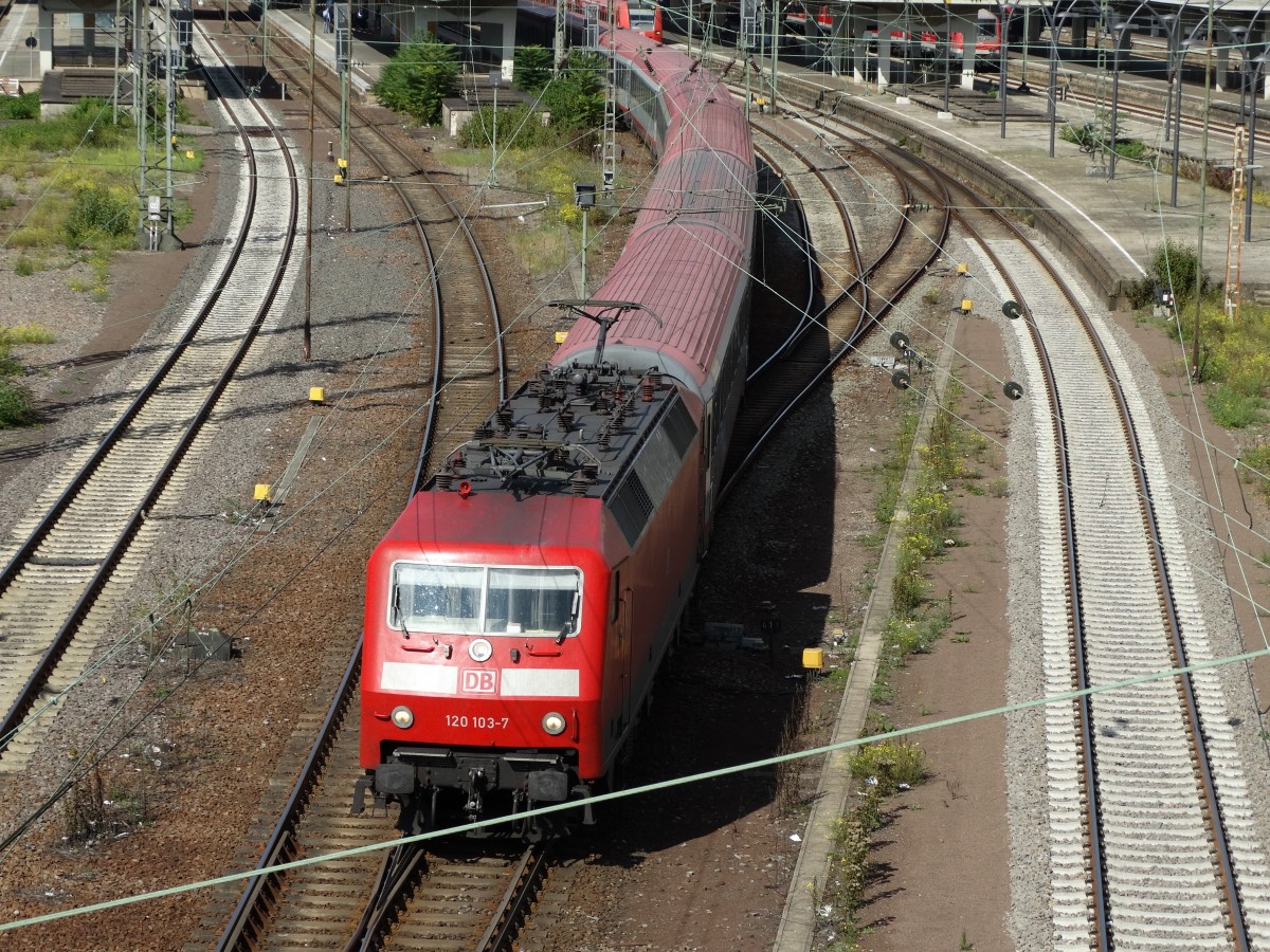 DB Fernverkehr 120 103-7 mit dem IC 119 am 27.09.14 in Heidelberg Hbf vom eine Brücke aus Fotografiert
