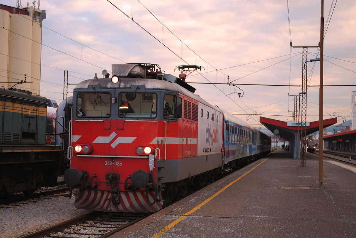 SZ 342-025 ist mit einem Schnellzug aus Ljubljana gerade in Maribor angekommen. (26.09.2014)