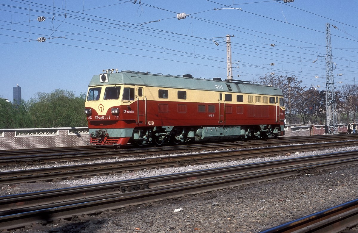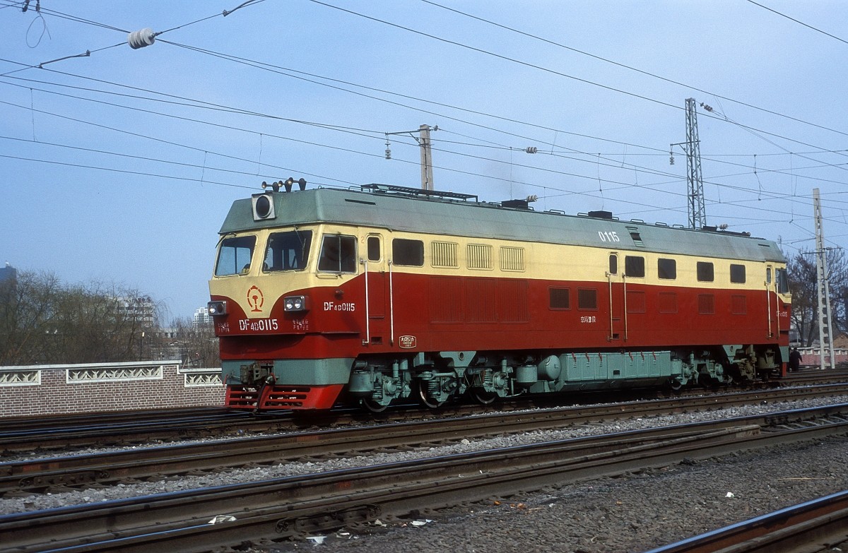 Ibbenbüren Esch am 11.4.1988 um 10.15 Uhr: 140660 ist mit einem gemischten Güterzug unterwegs in Richtung Osnabrück.