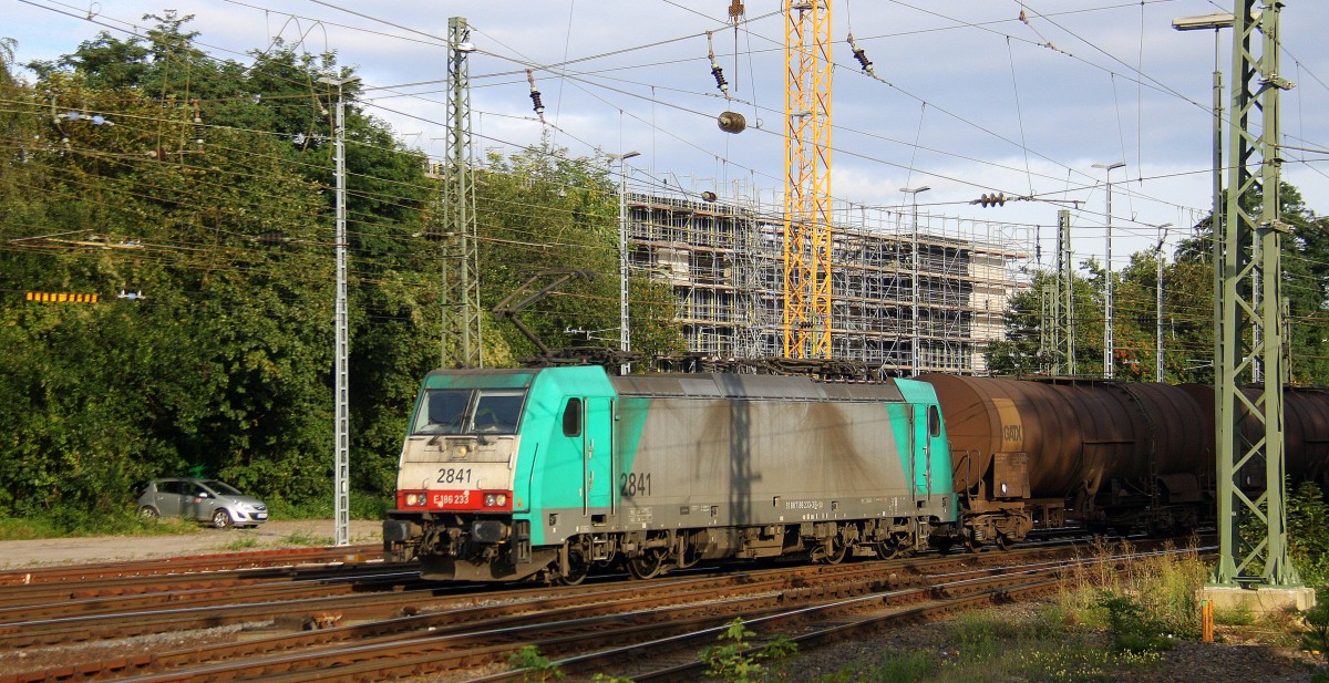 Die Cobra 2841 kommt aus Richtung Montzen/Belgien mit einem langen gemischten Güterzug aus Antwerpen-Noord(B) nach Köln-Gremberg(D) und fährt in Aachen-West ein.