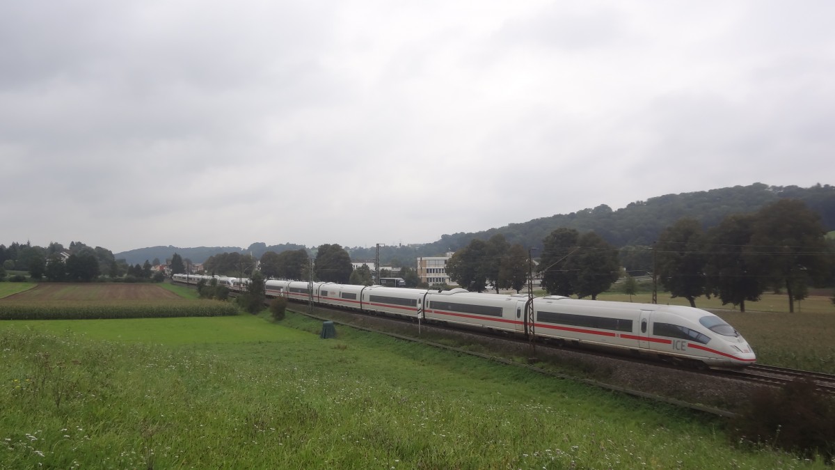 Ein Zug der Baureihe 407 fuhr am 1.9.14 als ICE513 durch Ebersbach.