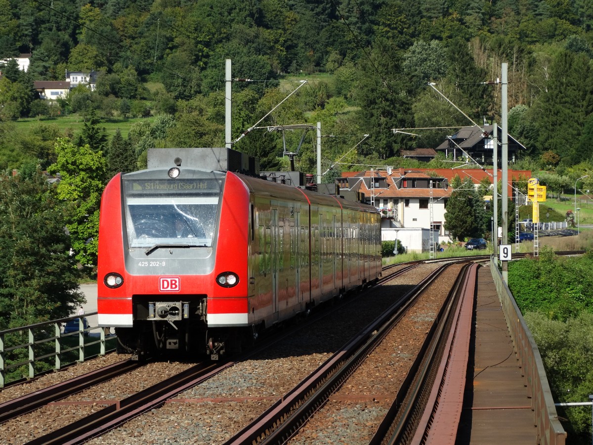DB Regio Baden Württemberg S-Bahn Rhein Neckar 425 202-9 am 29.08.14 in Neckargemünd auf der Neckarbrücke vor dem Bhf Neckargemünd Altstadt