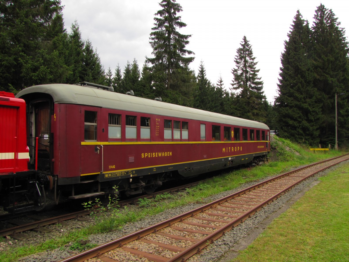 Der Mitropa Speiswagen WR 4 üh (56 80 8885 900-0 D-RSBG) am 23.08.2014 während dem 110. Streckenjubiläum im Bahnhof Rennsteig.