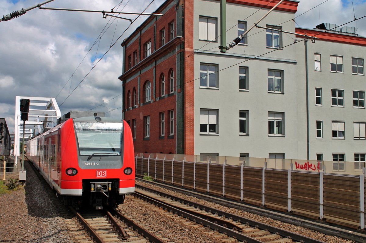 Nachschuss auf 425 516-2 am 24.05.2014 als RB 44 nach Mannheim-Friedrichsfeld, als sie aus Ludwigshafen (Rhein) Mitte den Rhein in Richtung Mannheim (Hbf) überquert.