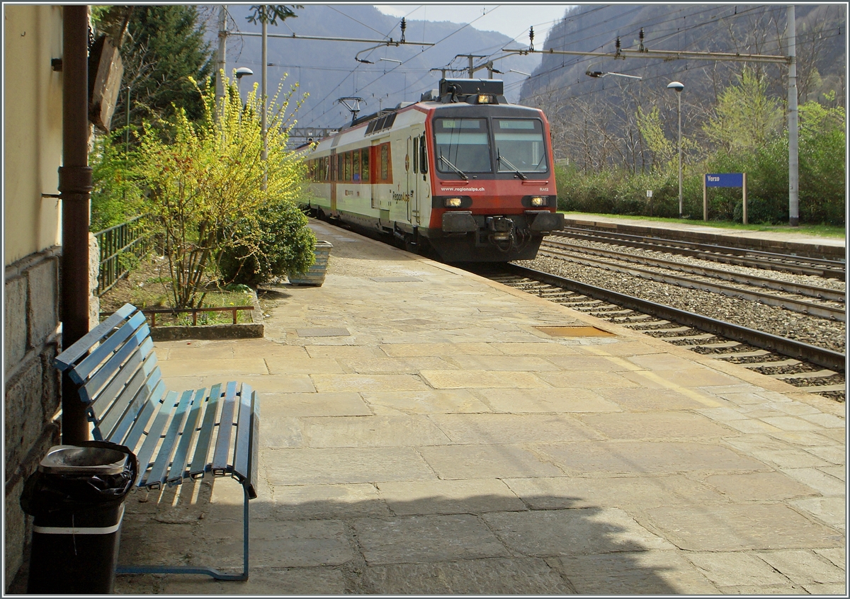 Der Regionalzug 6372 erreicht Varzo. Auf den falschen Gleis, sonst hätten die Reisenden die nicht niveaufreie Gleisüberquerung für das Gleis 3 benutzen müssen.