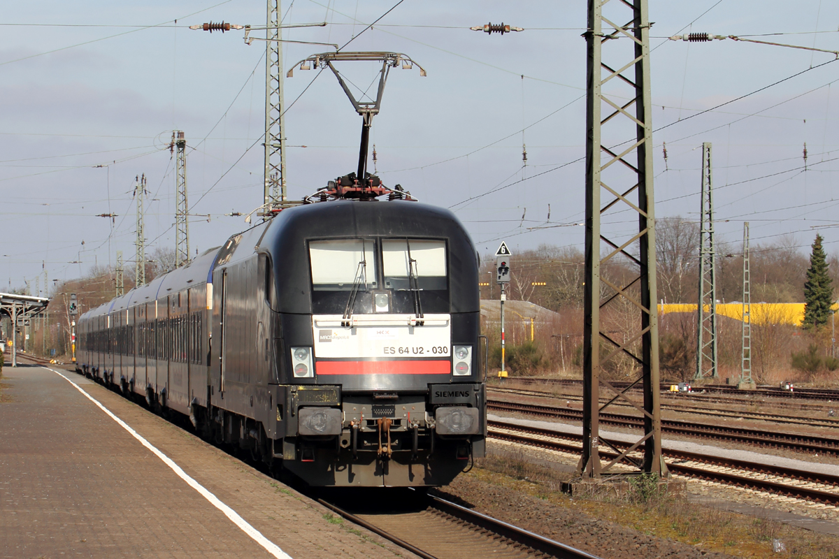 Am 12.04.2015 kam 182 508 mit ihrem IRE aus Hamburg nach Stendal und fuhr weiter in Richtung Berlin.