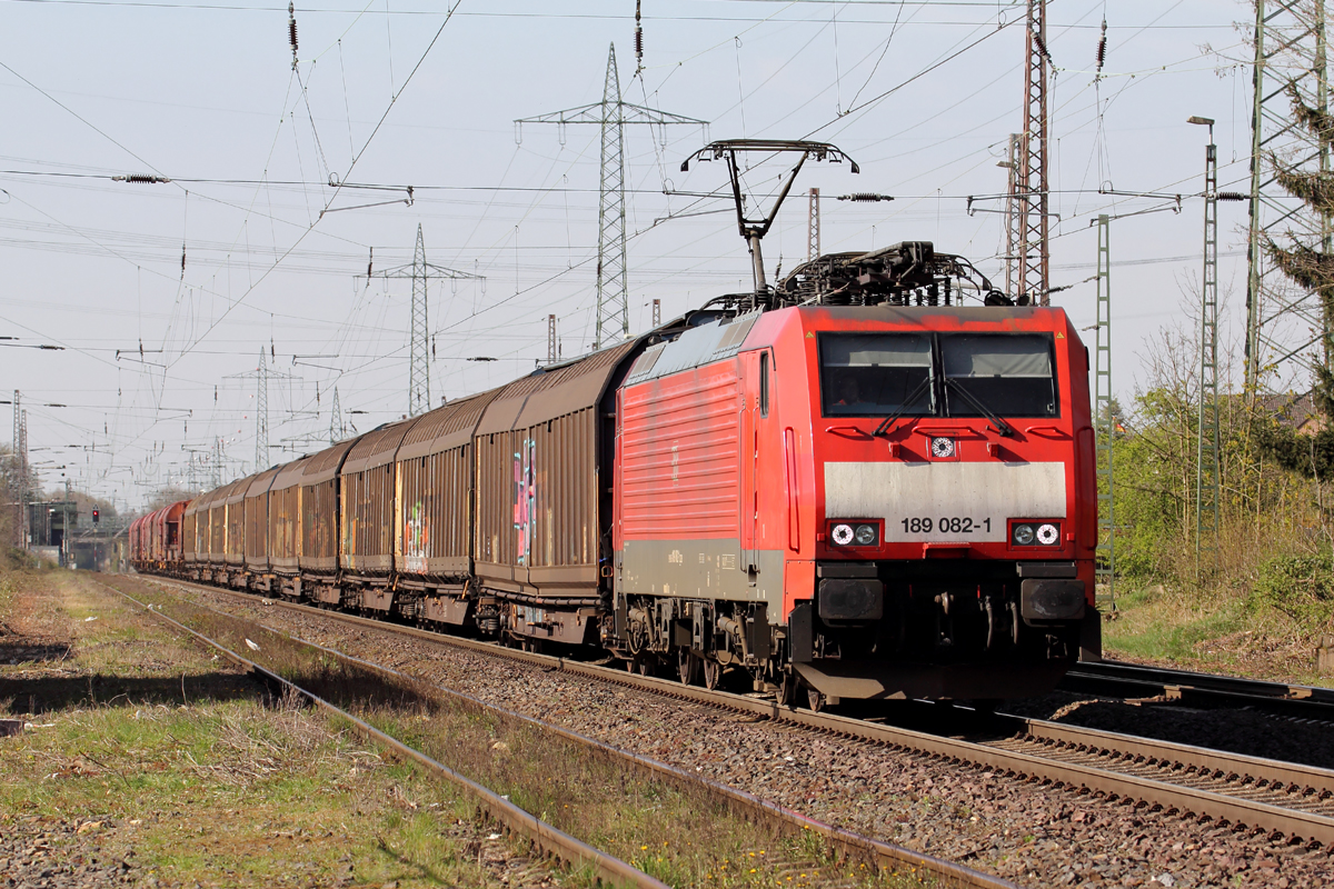 152 197-0 als Doppeltraktion mit 185 633-5 der ITL am 16.4.2015 gegen 16:10 Uhr auf der Riedstrecke in Richtung Norden im Bahnhof Riedstadt-Goddelau.