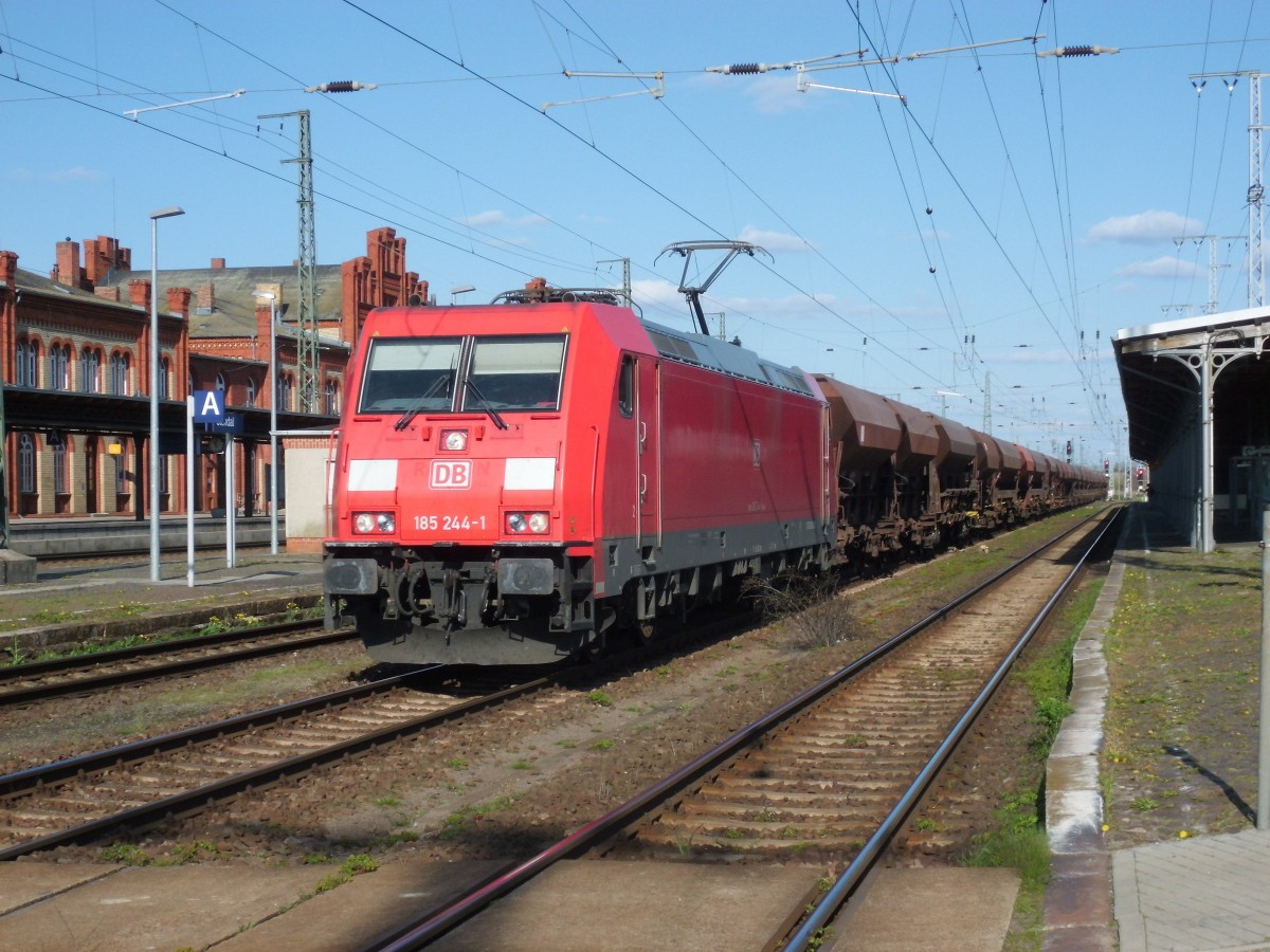 Am 18.04.2015 kam 185 244 mit ihrem Schotterzug aus Richtung Magdeburg nach Stendal und fuhr weiter nach Hannover.